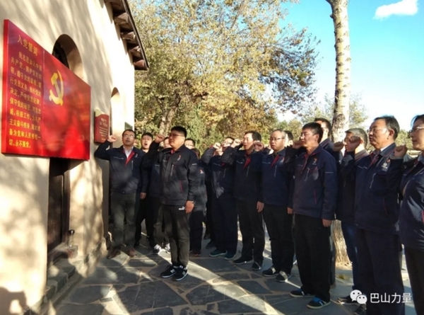 在七屆二中全會舊址前,全體人員面對鮮紅的黨旗舉起右手,重溫入黨誓詞,莊嚴(yán)的宣誓,共同緬懷老一輩無產(chǎn)階級革命者的豐功偉績,感悟西柏坡“萬眾一心的團(tuán)結(jié)精神自強(qiáng)不息的趕考精神團(tuán)結(jié)進(jìn)取的大無畏精神”的內(nèi)涵,進(jìn)一步增強(qiáng)“敢于斗爭、敢于勝利”的擔(dān)當(dāng)精神。